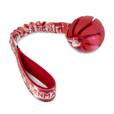 Kraftigt og lækkert trækketov med en robust bold, hvor hunden let kan få ved den pga de spiral formede riller.